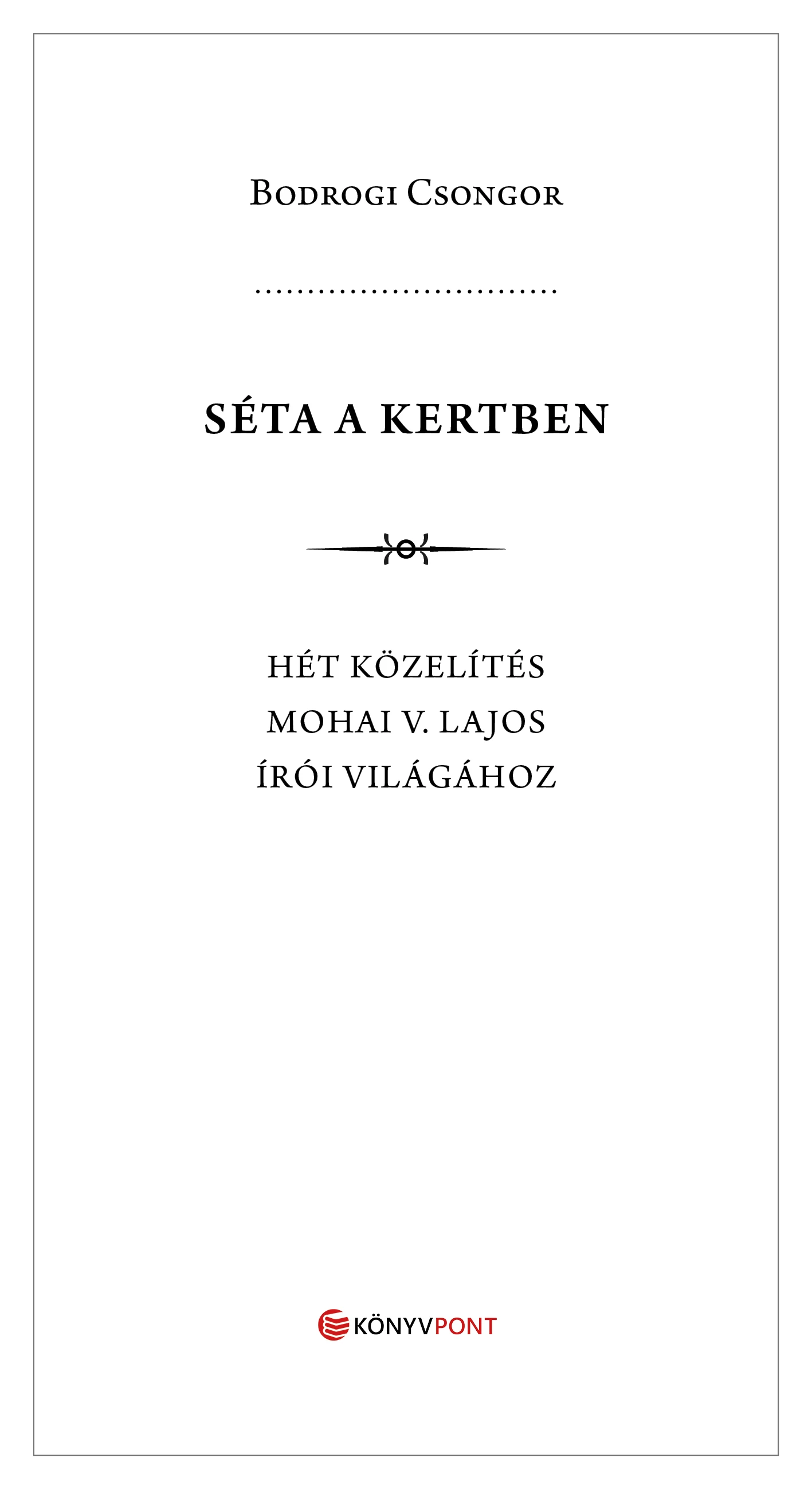 A kötet szövegeinek elrendezése keretes. Az első és utolsó írás mintegy ölelkező rímként fogja közre a köztes recenziókat. A Mohai esszéisztikájáról szóló tanulmány átfogó képet igyekszik nyújtani azokról a dolgozatokról, tanulmányokról, kritikákról, esszékről és prózai munkákról, melyek az életmű gerincét képezik. A záró írás a makro szintről a mikro szintre vált: egyetlen vers működését, varázsát igyekszik fölfejteni. Úgy vélem, a madárperspektíva és a nagyító nemcsak kiegészíti egymást, de rímel arra a szemléletmódra is, mely Mohai írásait jellemzi, vagyis a tágabb irodalomtörténeti perspektíva és a részletekben megmerítkezés együtt élésére.